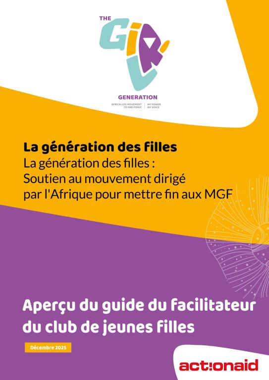 ActionAid Sénégal (AAS), en collaboration avec d'autres partenaires, a mis en œuvre The Girl Generation : Soutien au mouvement dirigé par l'Afrique pour mettre fin aux Mutilations Génitales Féminines (MGF) vise à contribuer à une réduction significative de la pratique des MGF dans quatre pays en Afrique (Sénégal, Somaliland, Kenya et Éthiopie) d'ici 2027. Le programme vise à accélérer les changements positifs dans les attitudes sociales pour mettre fin aux MGF, dans le cadre d'une vision plus large d'un monde où les filles et les femmes peuvent exercer leur pouvoir et leurs droits, avoir plus de choix et d'actions, et être libérées de toutes les formes de violences, y compris les MGF.